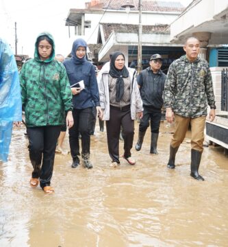 Walikota Eva Dwiana meninjau lokasi banjir di Kelurahan Campang Jaya