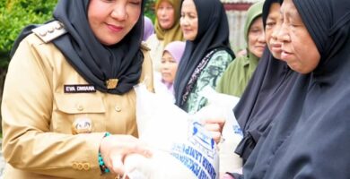 Walikota Bandar Lampung Hj. Eva Dwiana Sepulang Dari Mengikuti Retreat di Magelang Langsung Membagikan bantuan Untuk Korban Banjir