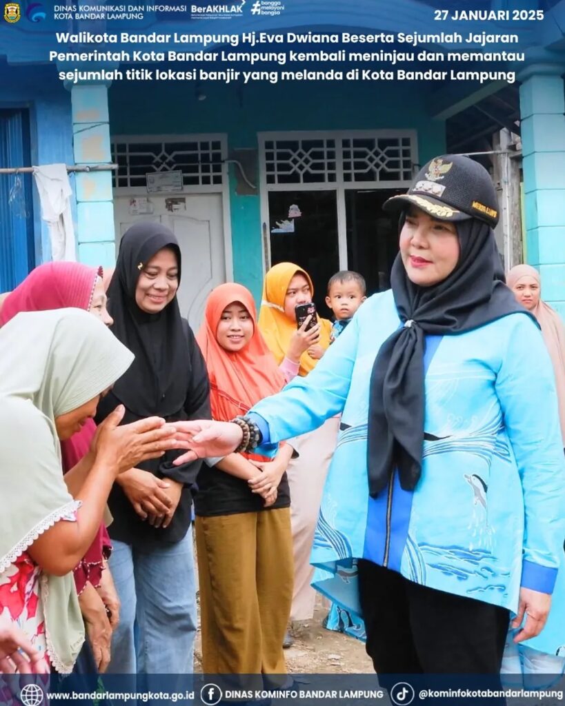 Walikota Bandar Lampung Hj.Eva Dwiana Beserta Sejumlah Jajaran Pemerintah Kota Bandar Lampung kembali meninjau dan memantau sejumlah titik lokasi banjir yang melanda di Kota Bandar Lampung.
