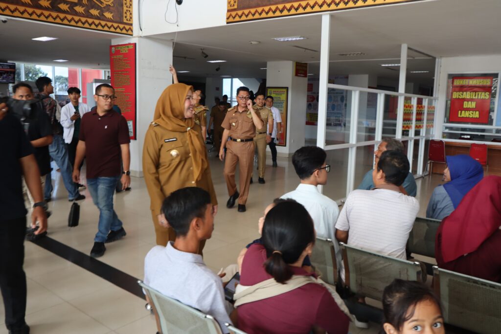 Hari pertama masuk kerja usai libur dan cuti bersama Ramadhan tahun 2025, Walikota Bandar Lampung Hj. Eva Dwiana melakukan inspeksi mendadak (sidak) di sejumlah OPD dan Mal Pelayanan Publik Pemkot Bandar Lampung, Selasa (8/4/2025).